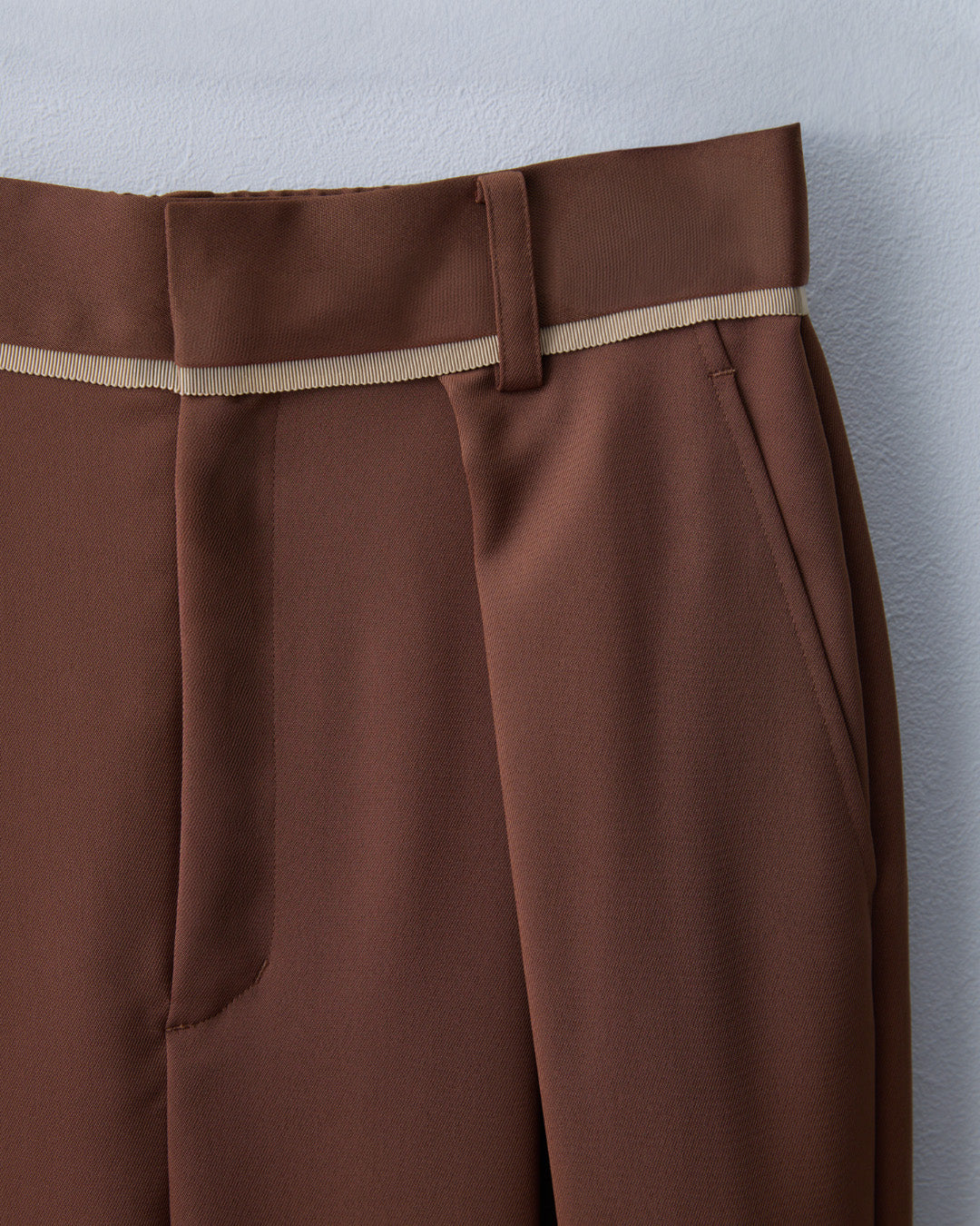 前ウエストの配色テープが、上品なアクセントのパンツ。