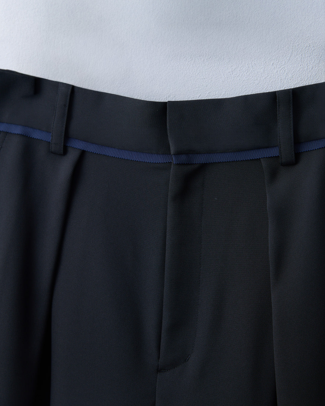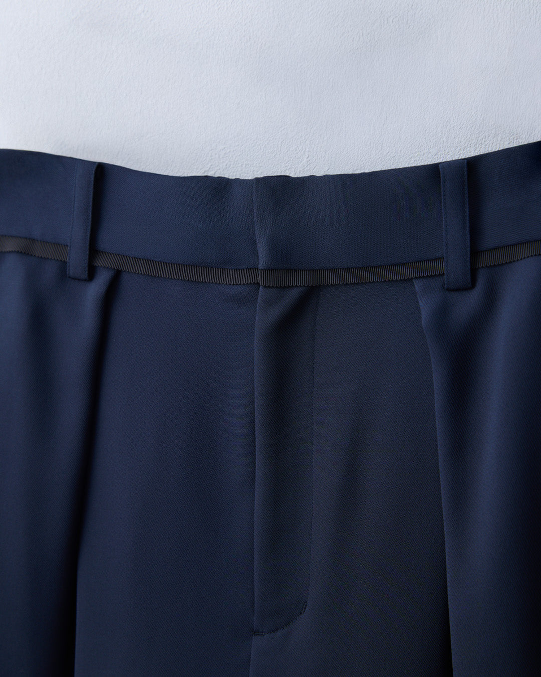 フロントには深めのタックを施し、腰まわりをふわりと包み込みます。