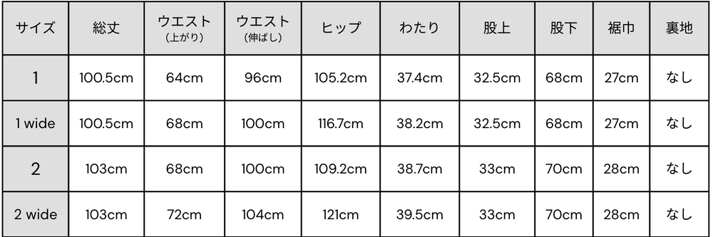 サイズ1 wide →ユニクロサイズM~L相当