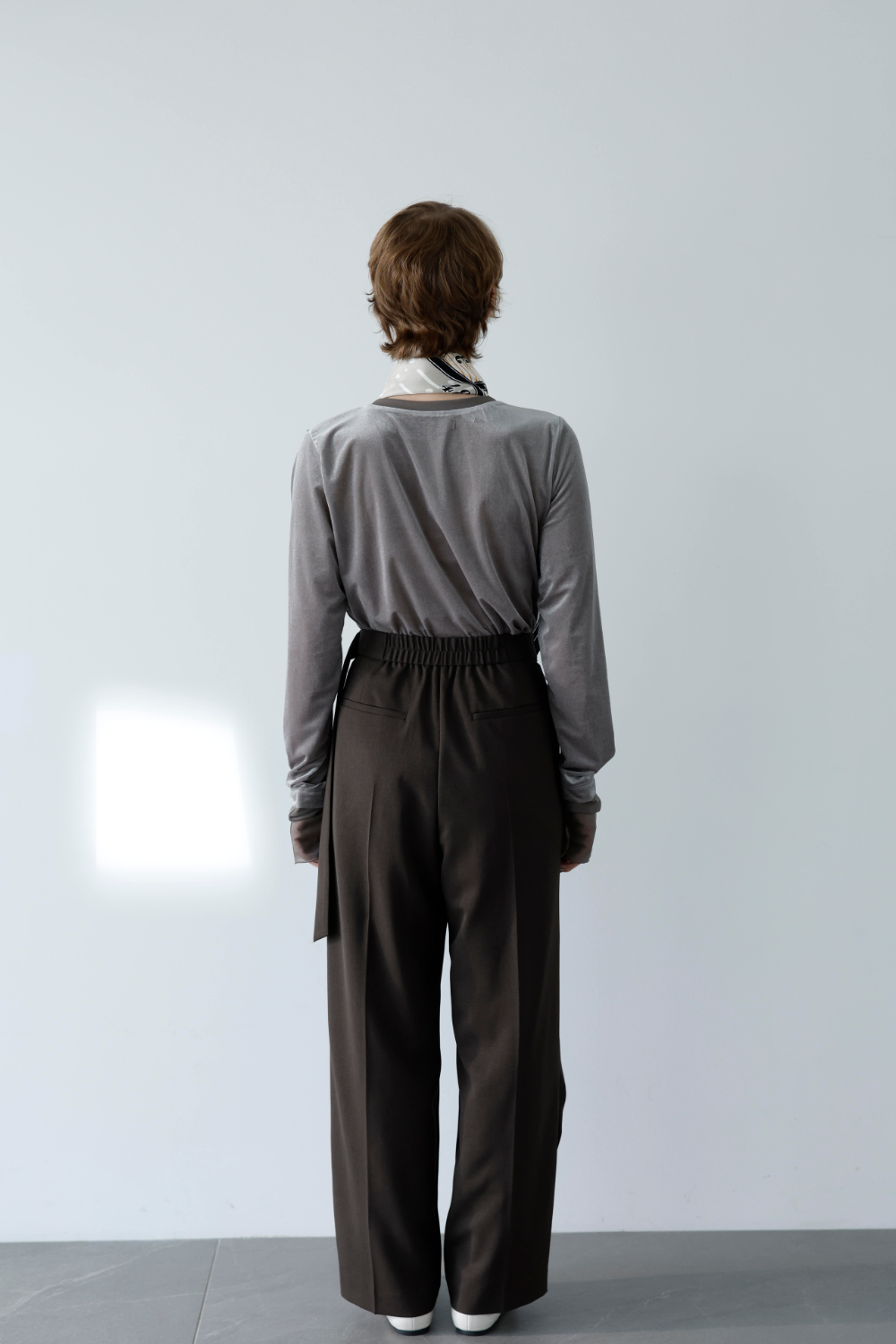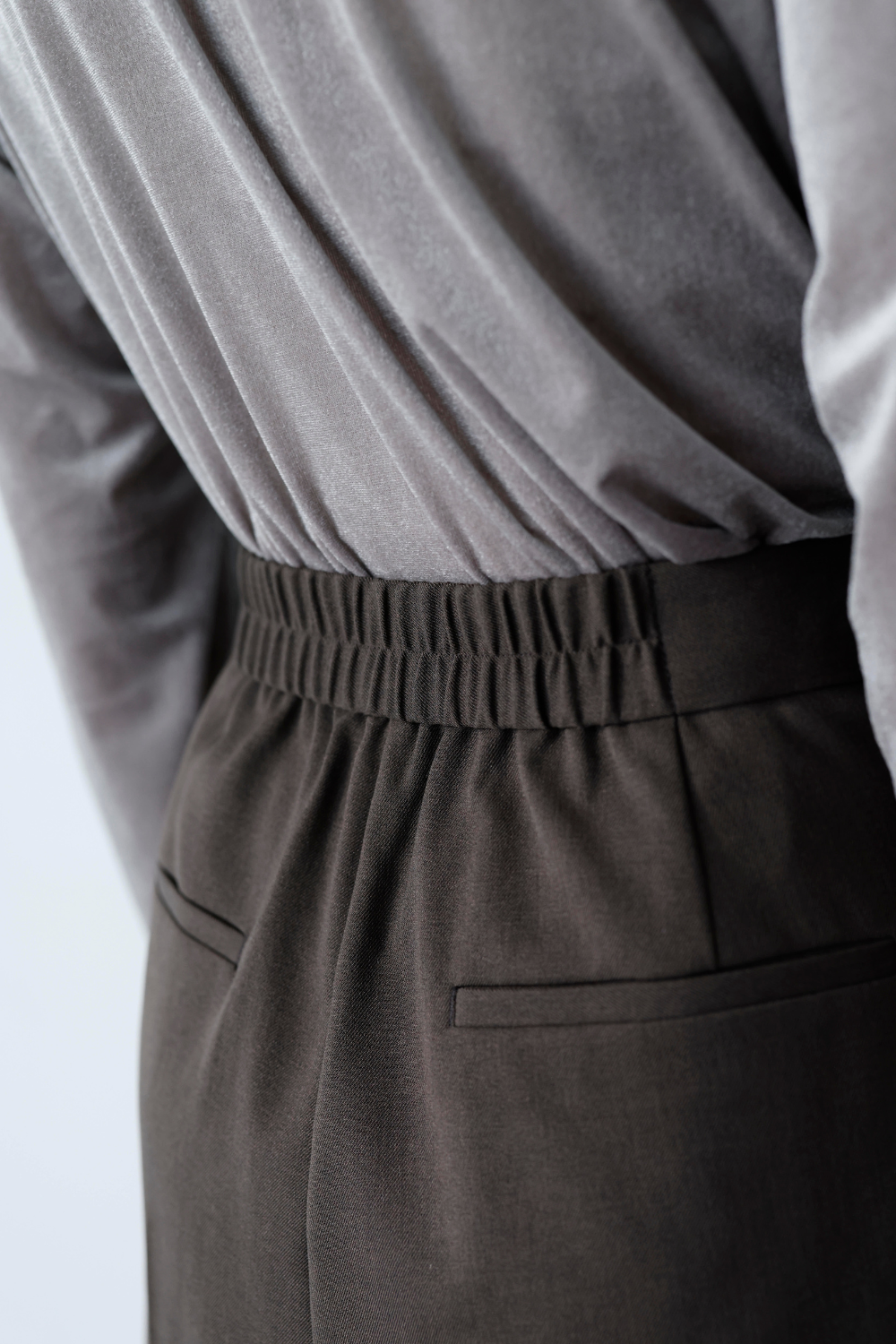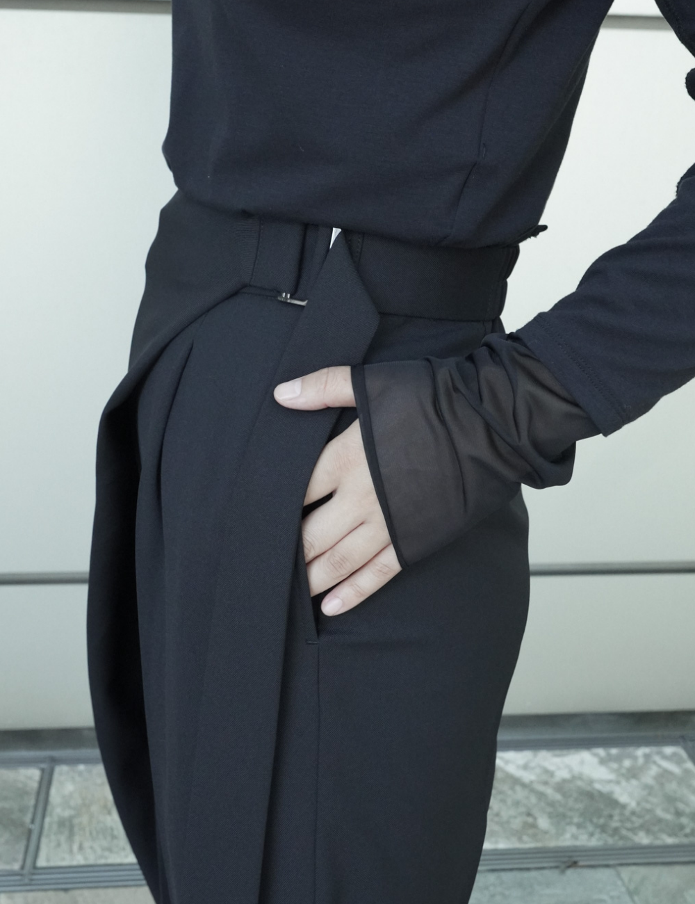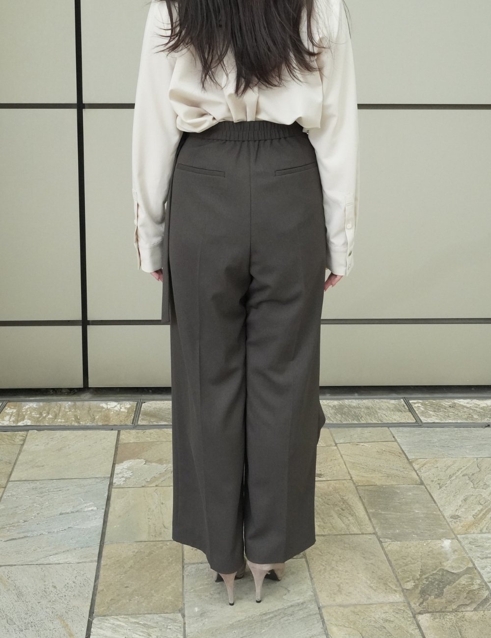 ウエスト部分にタックを入れることで腰周りの広がりを抑え、