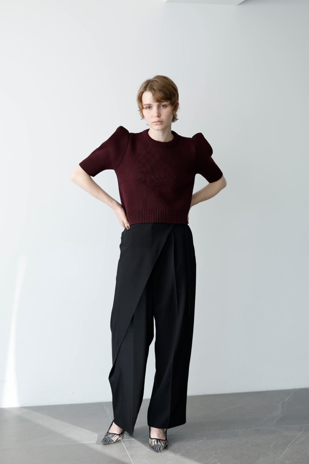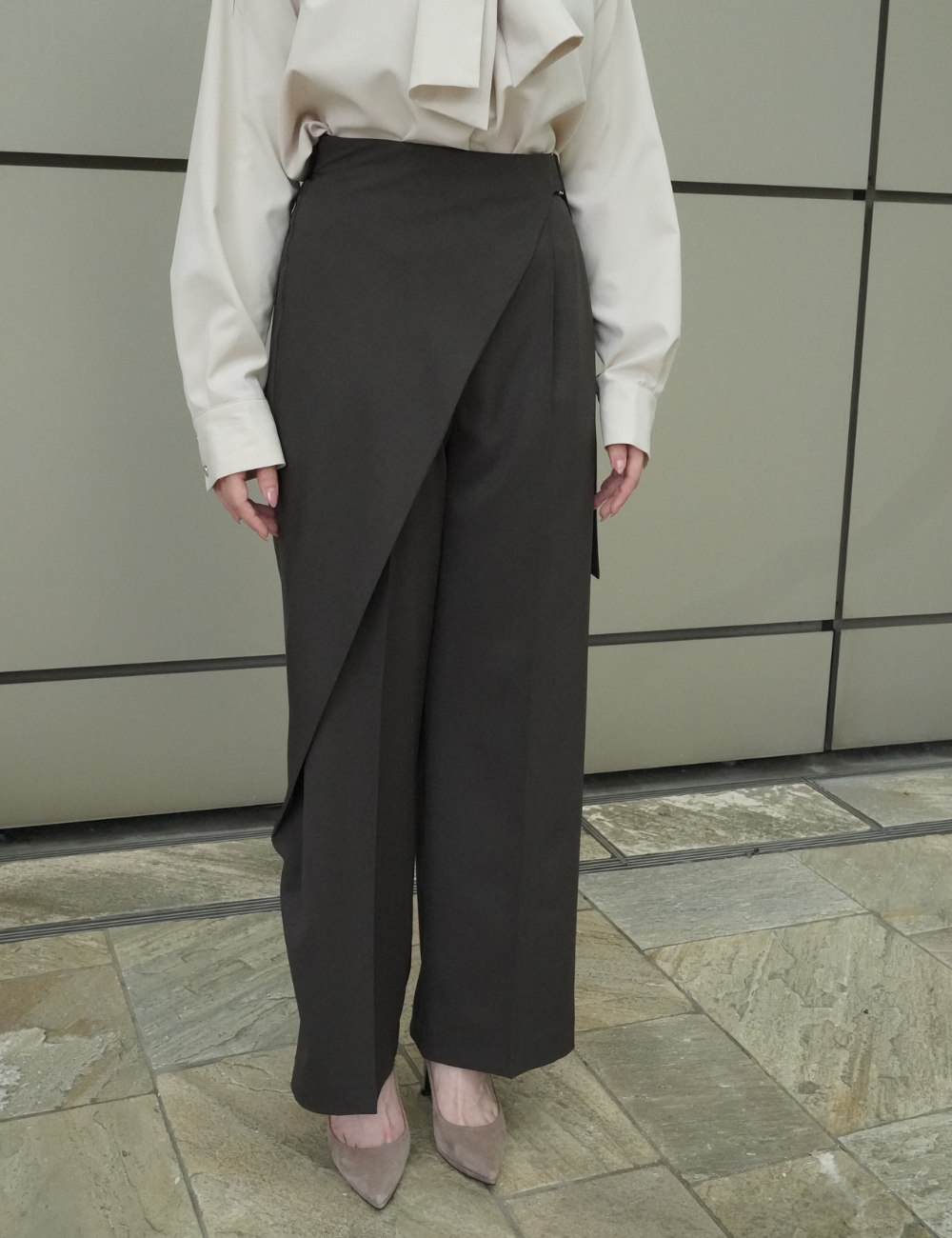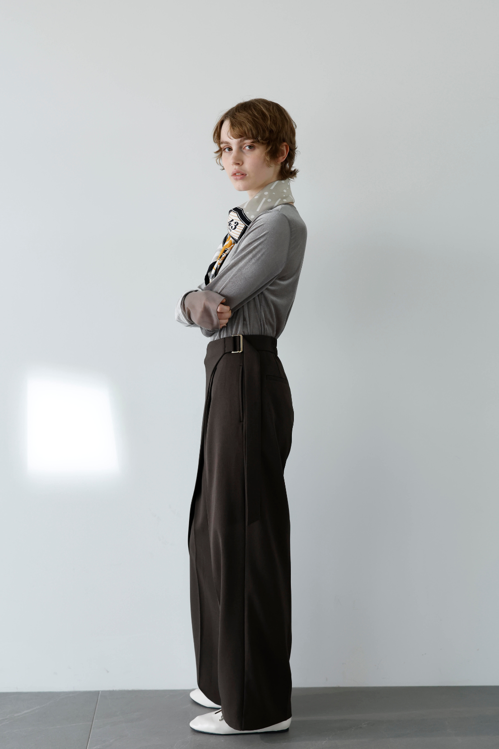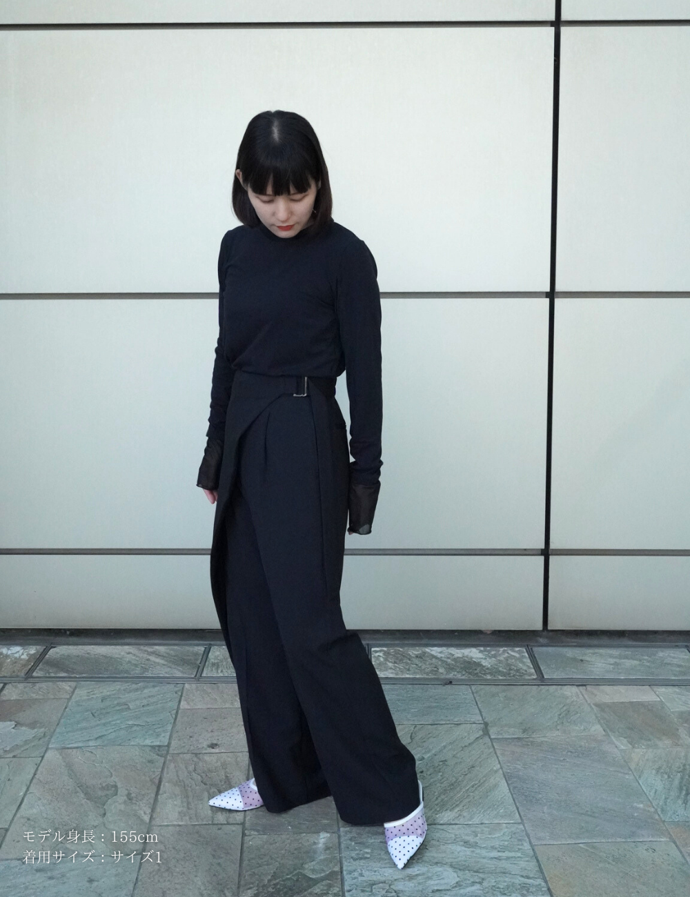 ウエスト部分にタックを入れることで腰周りの広がりを抑え、