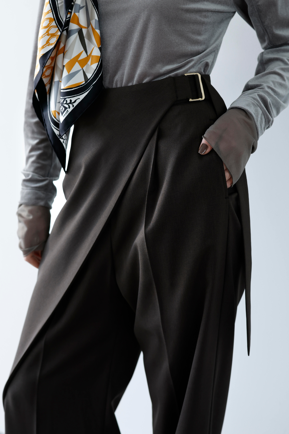 歩くたびに生まれるドレープが上品な存在感を放ち、