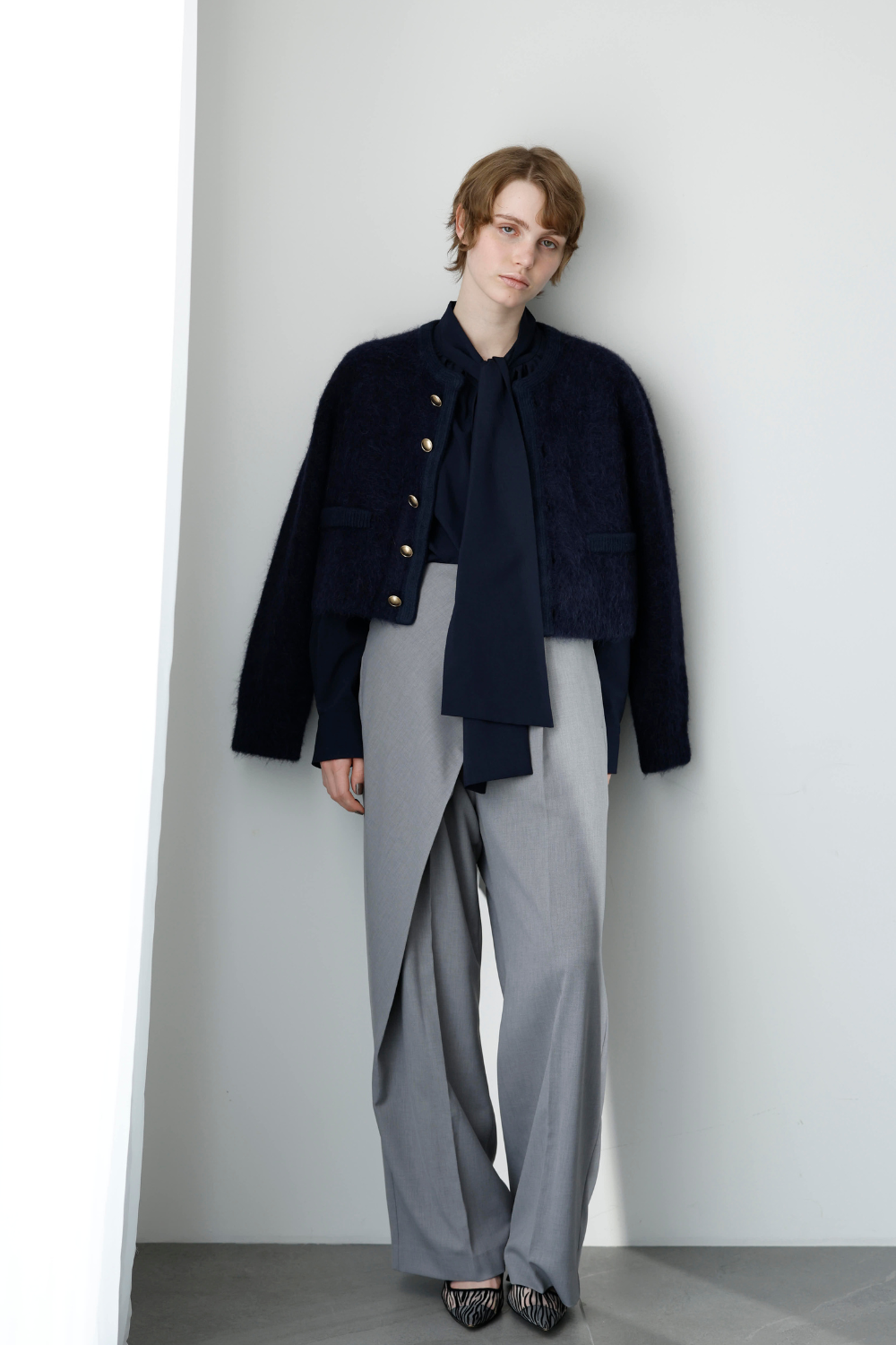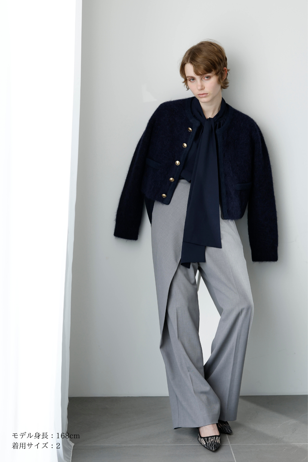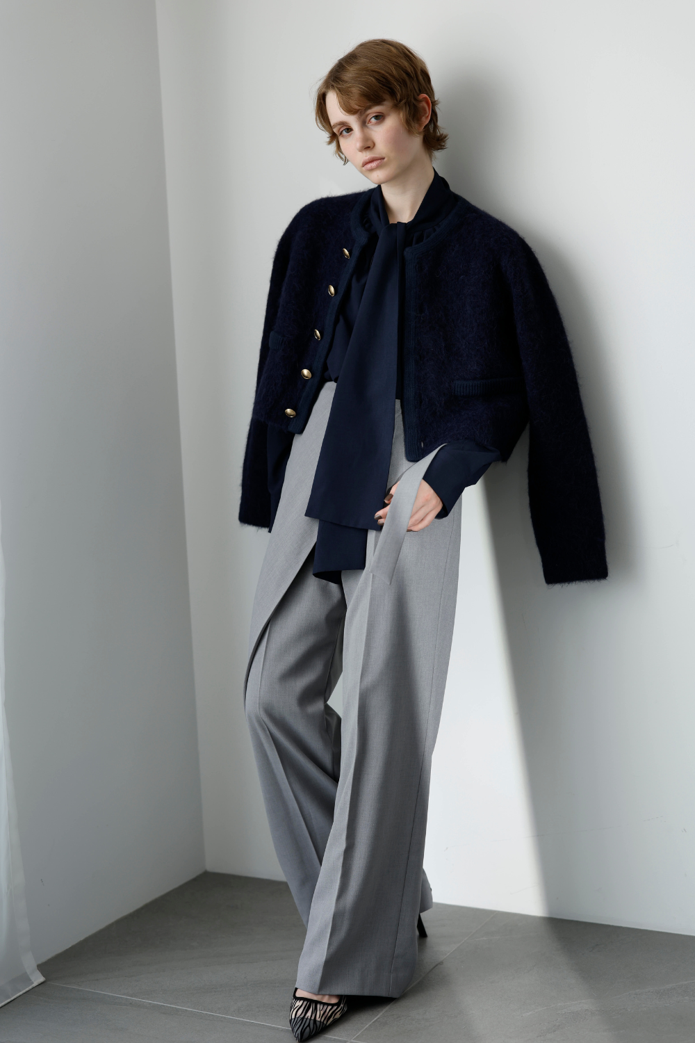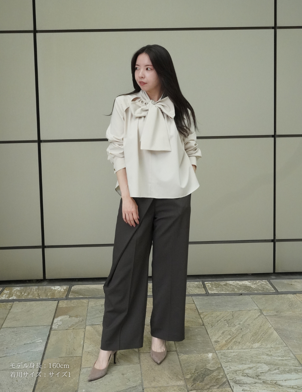 落ち感のあるシルエットが大人の上品さを引き立てます。