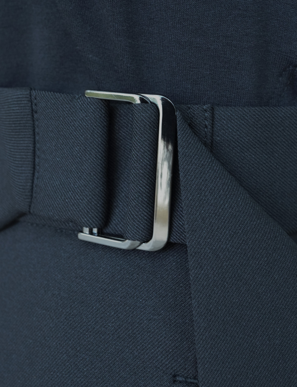 きらりと光るメタルバックルがウエストのアクセントとなり、