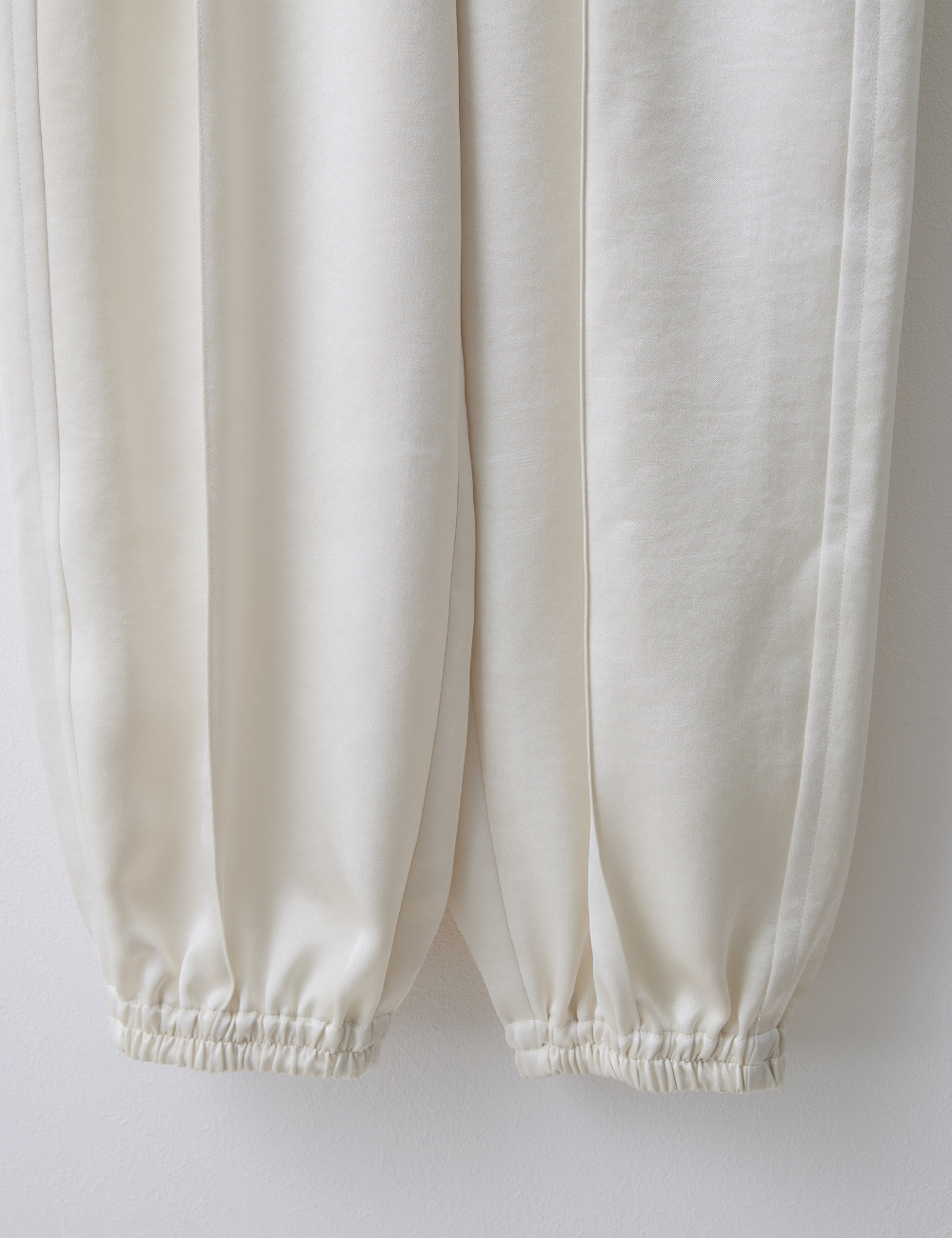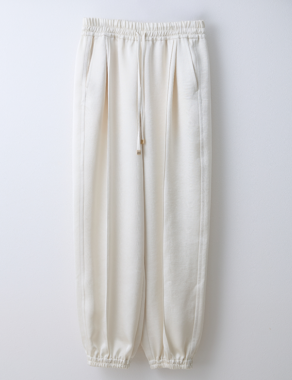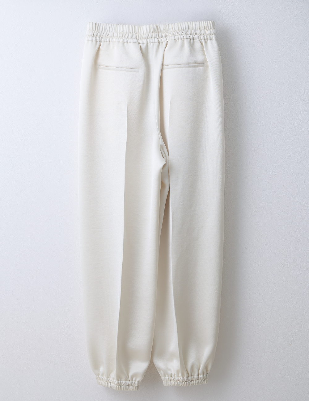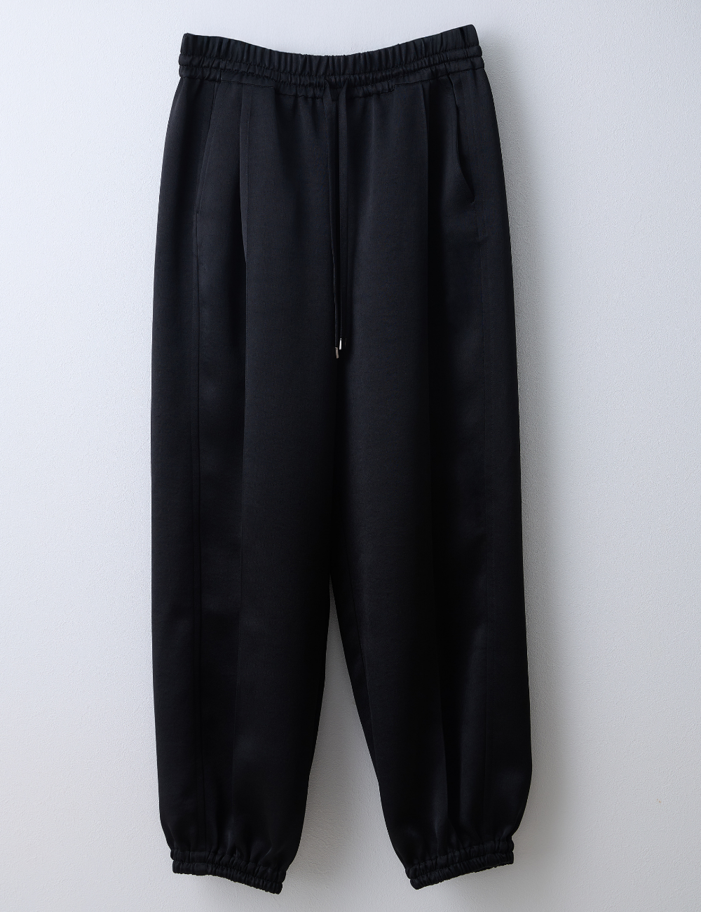 大好評のサテンパンツが、裾ゴム仕様のジョガーパンツになって新登場。