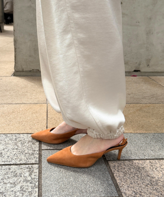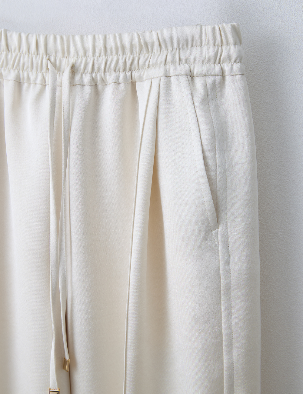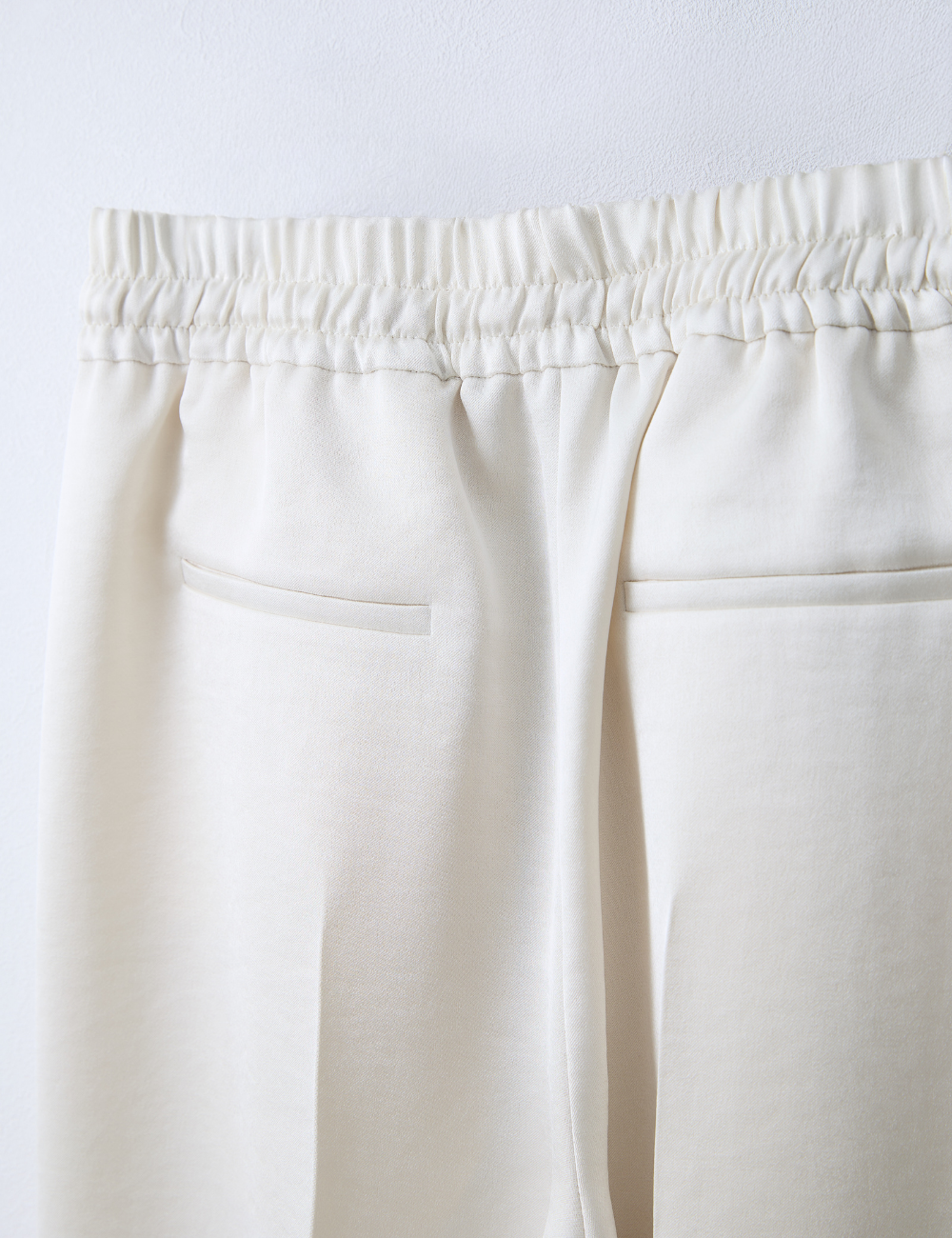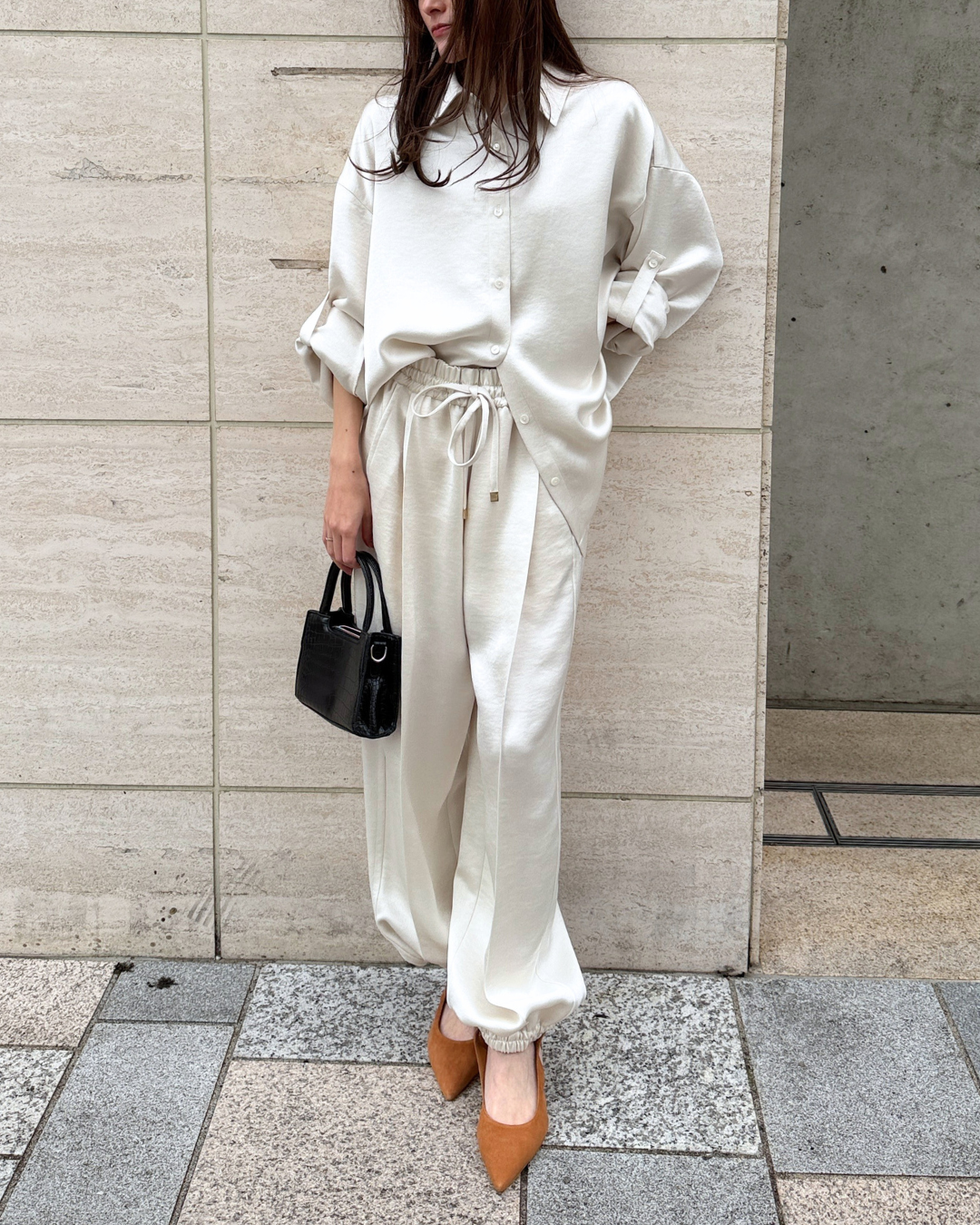 大好評のサテンパンツが、裾ゴム仕様のジョガーパンツになって新登場。