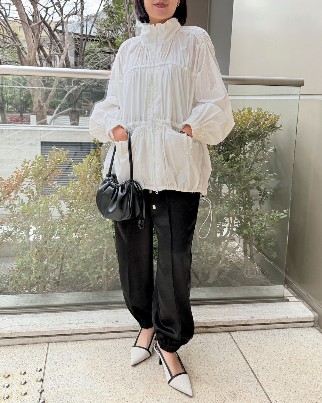 裾が絞られたことにより、スニーカーやフラットシューズとの相性がさらに良くなりました。